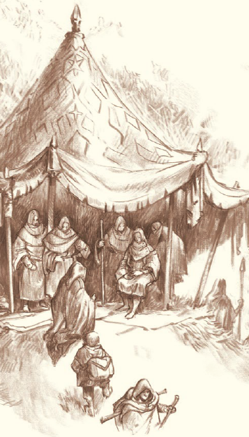 The game has a narrative focused travel mechanic, the threat of ‘shadow points’ if characters do unheroic things and rules governing “councils”.