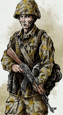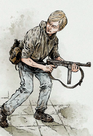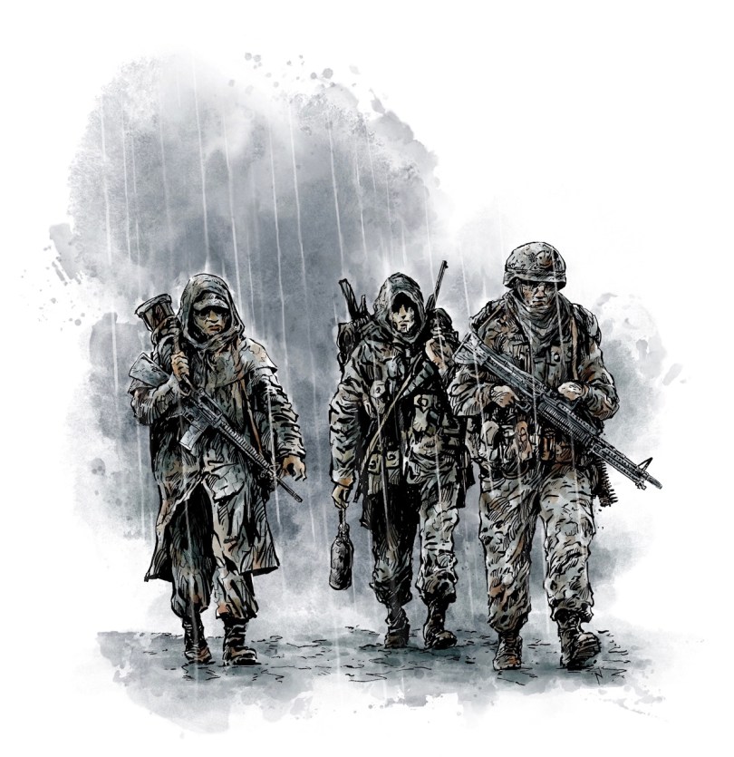 The characters are soldiers of crumbled units and potentially a civlian or two, who must band together to survive. Players set their own goals for what ‘success’ looks like: fleeing west, creating a base and carving out a safe space for soldiers and civilians or roam around as mercenaries to get supplies until luck runs out?