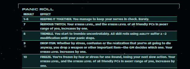 Initially, the game may seem narrow, but it can work very well for a range of playstyles, including scary military science fiction, survival horror, corporate espionage and gritty, free trader, planet hopping adventures.