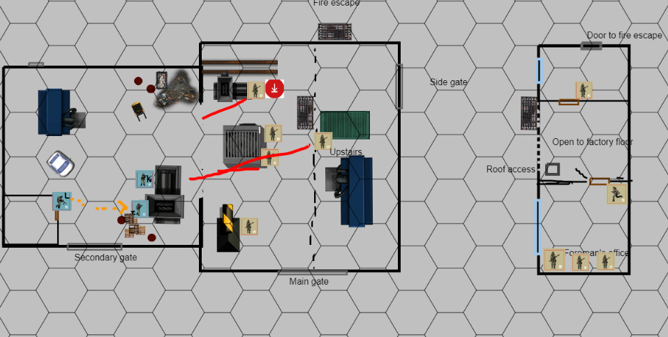 I don’t think I understood the locations of everything in the Flooded Chambers quite as the designers intended. On the map below, you can see how I ran it. I certainly didn’t catch that the Marsh Dwellers and treasure was in the same place (although that idea makes sense, but isn’t communicated on the map).